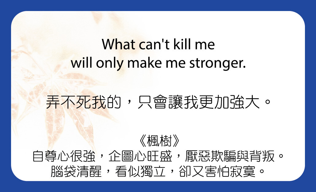 29 8 月 禾禾卡解卡弄不死我的,只會讓我更加強大 禾禾卡 發表於 2024-08-292024-09-28 by 姐是謎 瀏覽量: 203 逆境,就像健身房裡的啞鈴,只會讓你更強壯 人生就像一場持續的健身課程,而每一次挑戰與挫折都是你手中的啞鈴。每當生活給你沉重的打擊時,就像你舉起越來越重的啞鈴,雖然過程讓你大汗淋漓、肌肉酸痛,但當你一次次承受住這些挑戰,回頭看看,突然發現自己的內心變得更強大,思想變得更加成熟。 想想哈利·波特裡的主角哈利,他失去了父母,被伏地魔追殺,承受了無數苦難,但這些並沒有擊垮他。每一次的危險和挑戰反而讓他變得更勇敢、更堅強,最終成為打敗黑暗勢力的關鍵人物。就像在健身房鍛鍊一樣,所有的逆境都在幫助他成長。 逆境就像啞鈴,痛苦一時,卻鍛鍊出無可匹敵的力量。 風暴來了,成為擁有堅硬甲殼的烏龜 當生活的風暴席捲而來,有的人選擇躲避,有的人選擇承受。像烏龜一樣,在危險來臨時,縮起身體,堅持忍耐,你會發現,當風暴過去,你的殼變得更堅硬了。正是這些風暴讓你具備了抵禦未來挑戰的能力。想想那隻經典的傳說龜兔賽跑,雖然兔子跑得快,但因為自滿,反而輸給了龜。烏龜的堅韌讓它贏得了比賽。生活中的挑戰就像賽場上的障礙,持之以恆的烏龜精神會讓我們變得無懼風暴,無懼挑戰。風暴只會讓烏龜的殼更加堅硬,讓我們更加堅強。 就算被踩進泥巴裡,你也是那顆終會綻放的種子 有時候,人生把你逼到低谷,就像一顆被丟進泥土裡的種子。但你會發現,那片泥巴正是讓你萌芽、成長、開花的土壤。每一顆種子都需要經歷黑暗,才能破土而出,迎接陽光和雨露。凱蒂·佩芮,一開始並不順利,早期的專輯銷量慘淡,經歷了無數次被拒和打擊。但她從未放棄,最終她的堅持讓她成為國際巨星。她就像那顆被丟進泥土的種子,經歷了黑暗和壓力,卻最終綻放出耀眼的花朵。泥土只會讓種子長出更堅韌的根,逆境是讓你茁壯成長的最佳養分。 此張禾禾卡代表意思 【顏色】 藍色的禾禾卡,代表「轉變的力量」。 對應的五行:水/延續的概念。 代表多元、變化、聰明、理智和分析。 【樹語】 禾禾卡的樹語勾勒出你當下的心理狀態,給予你心靈的支持、指引與祝福的力量。 《楓樹》自尊心很強,企圖心旺盛,厭惡欺騙與背叛。腦袋清醒,看似獨立,卻又害怕寂寞。 此張禾禾卡提醒你 每個人都會遇到挑戰和挫折,但正是這些磨練讓我們變得更強大。面對逆境時,選擇堅持、選擇承受,這些經歷只會讓我們更加堅韌有力。無論是啞鈴般的打擊,還是風暴裡的挑戰,甚至被丟進泥巴裡,只要你挺住,逆境終會變成你成功的基石。 弄不死我的,只會讓我更加強大,這是成長的法則,也是成功的根基。 祝福您~ ※更詳盡的禾禾卡解卡,點擊此連結,預約配合的諮詢師為您服務。 療癒開運小舖療癒你的心*開運先開心 最懂你的禾禾卡 Go買禾禾卡,人生不再卡,處處順利好運來! 線上占卜 解卡見證 解卡文章 Go買 聆聽你心裡的聲音,不將就 禾禾卡 真正的力量不在過去與未來,而是在當下 禾禾卡
