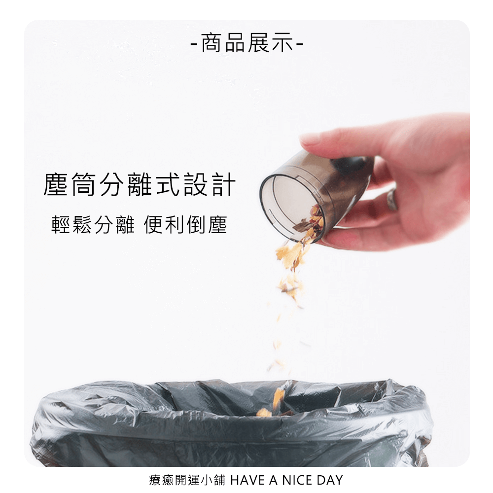 - 塵筒分離式設計,輕鬆分離、便利倒塵