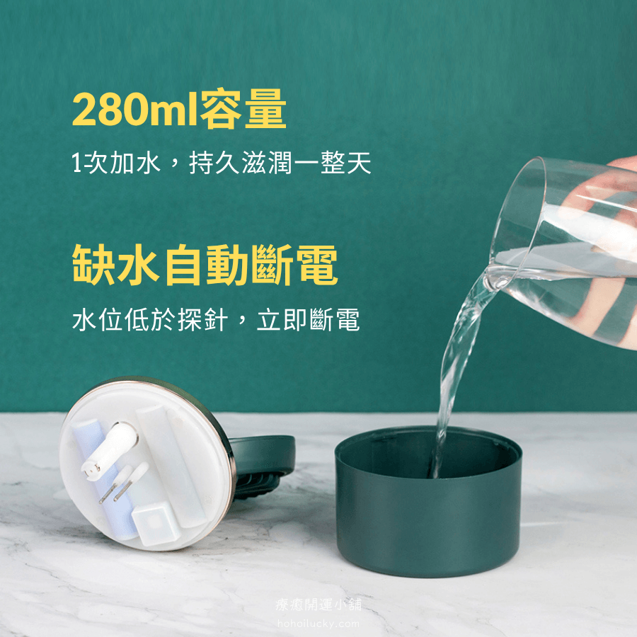 - 280ml大容量水箱+2檔噴霧模式,持續保濕、不濕桌。
