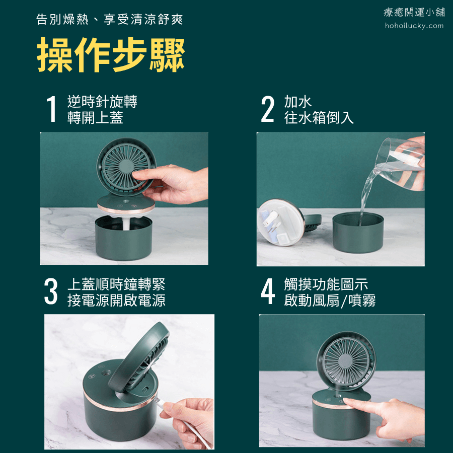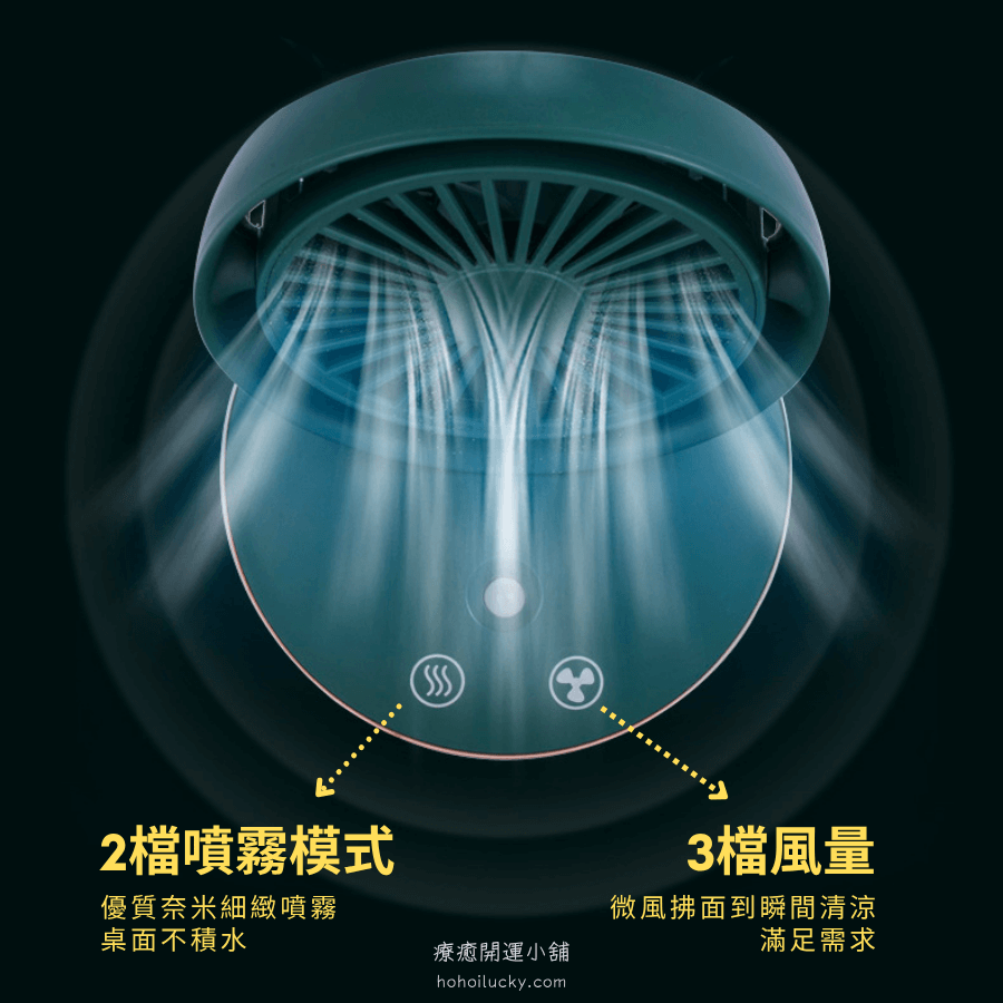 集結渦輪強勁風力+奈米級加濕噴霧+多檔風速於一身,內建2000mAh電池支援無線使用,不論是在辦公室、梳妝台還是臥室床頭,一按即涼、一開就潤。