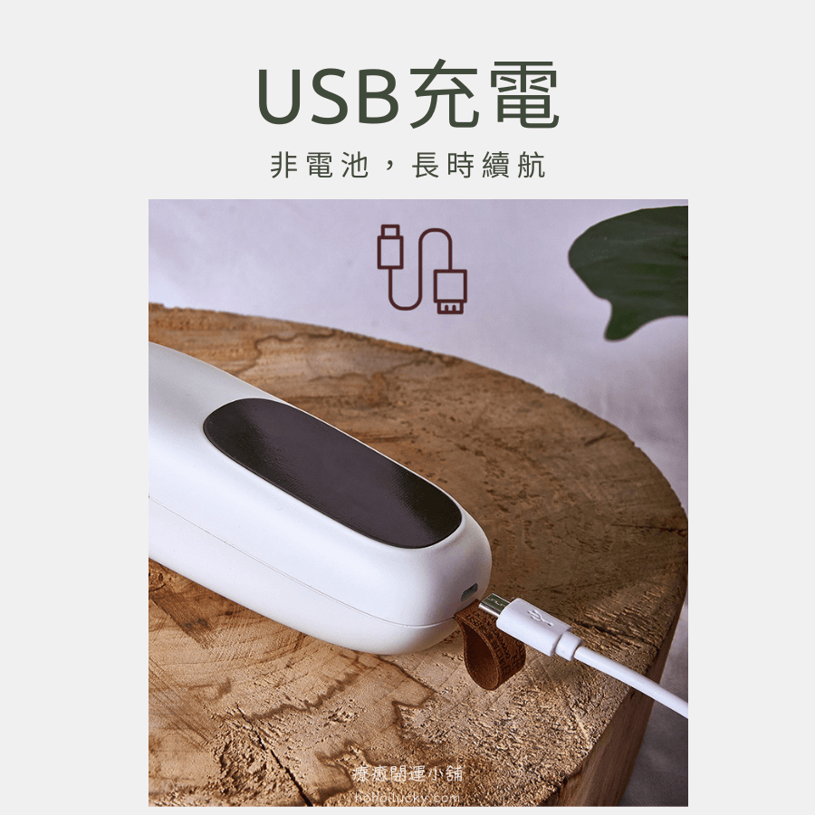 - USB充電式設計,免換電池:環保又便利。