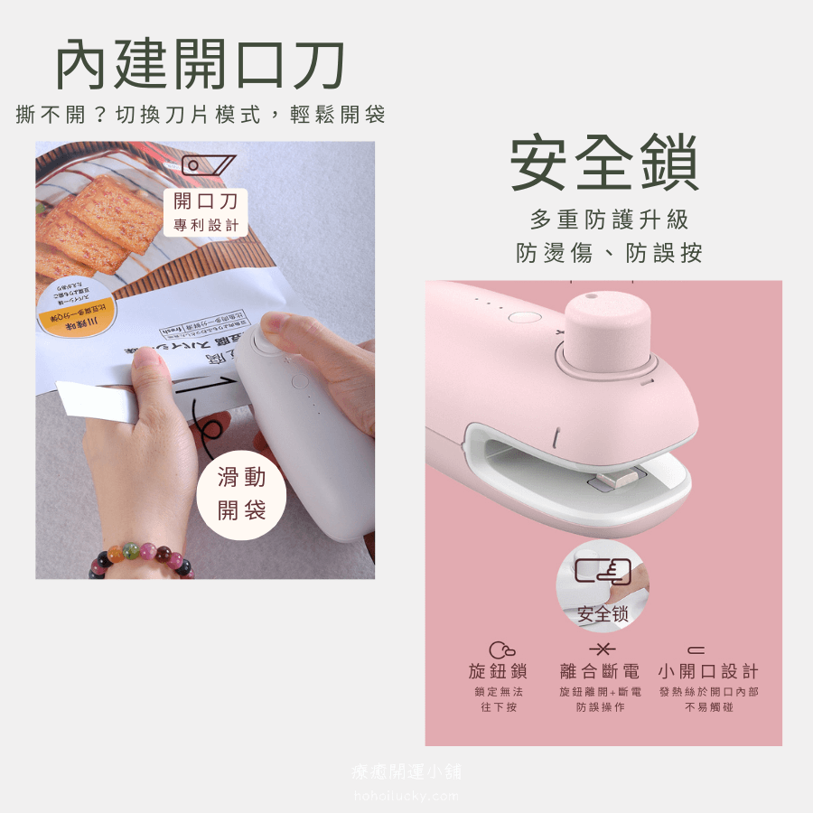- 三段加熱溫控:薄袋、中厚袋、厚袋都能輕鬆封。