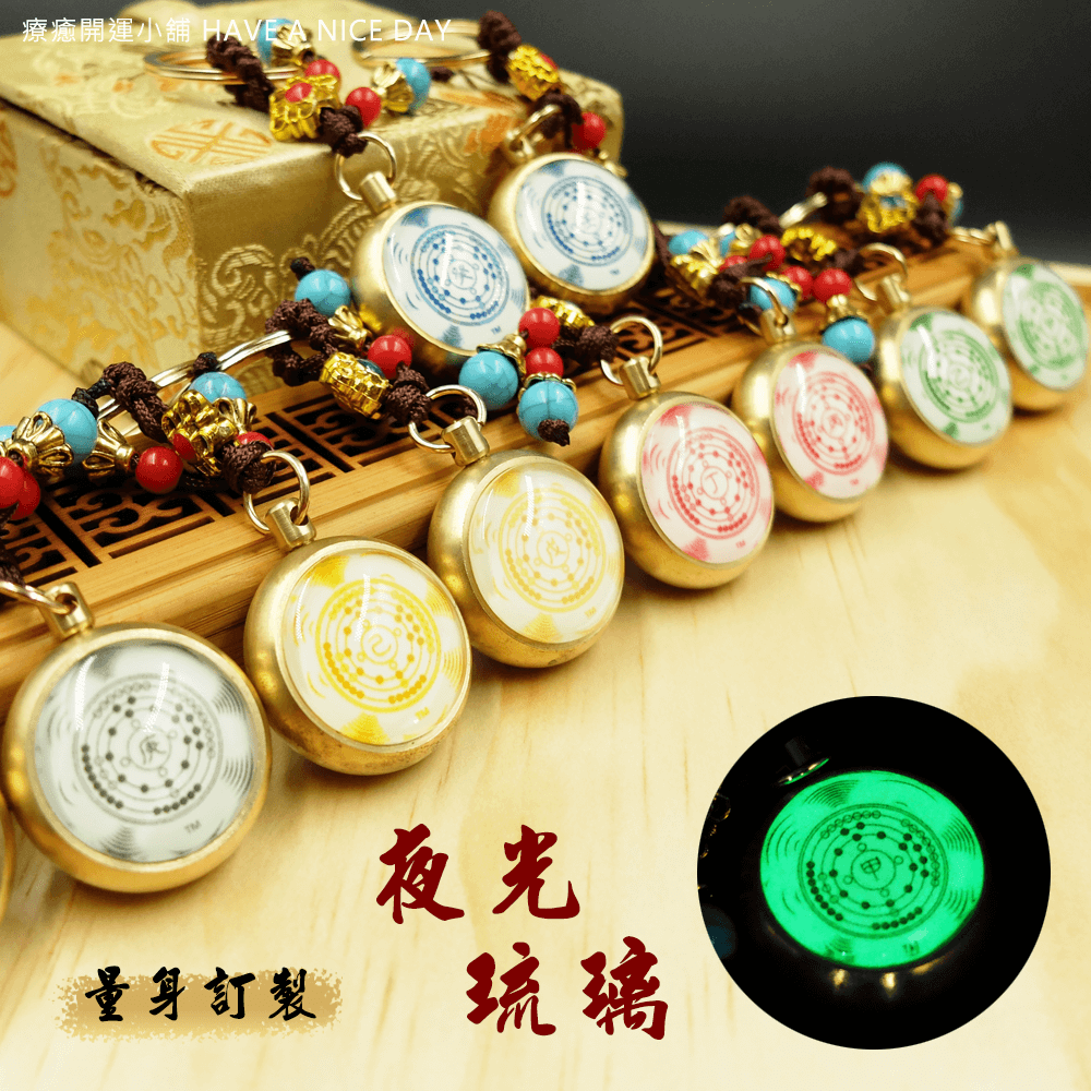 主要材質:復古黃銅、夜光琉璃、琉璃珠、手編繩