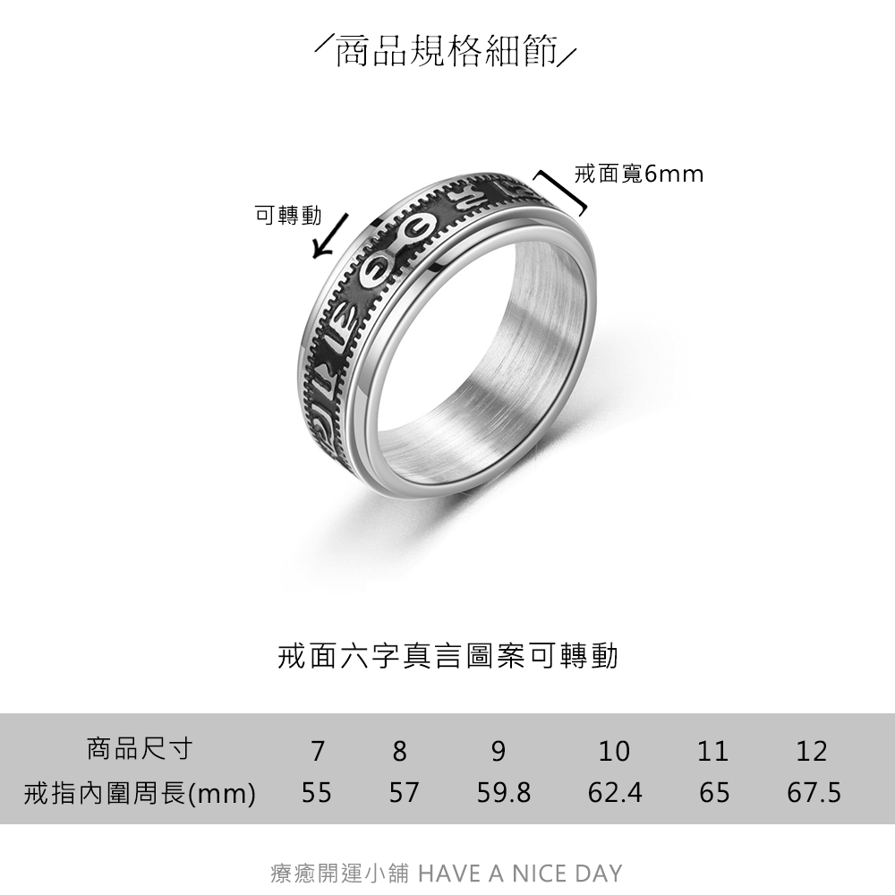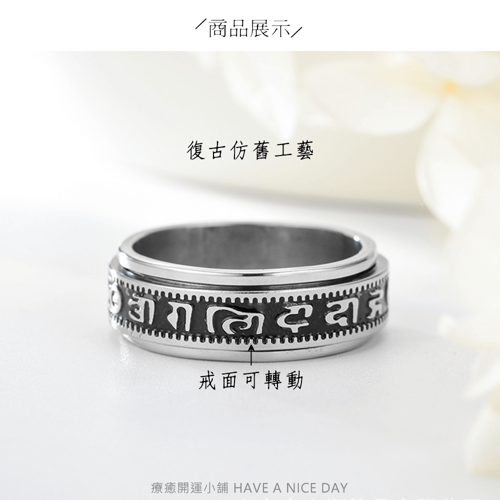 六字真言復古轉動戒指