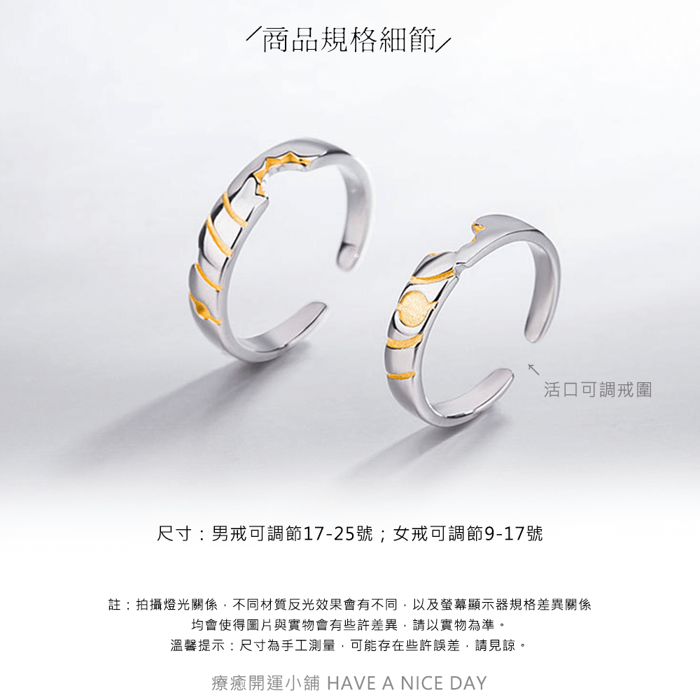 尺寸:男戒可調節17-25號;女戒可調節9-17號