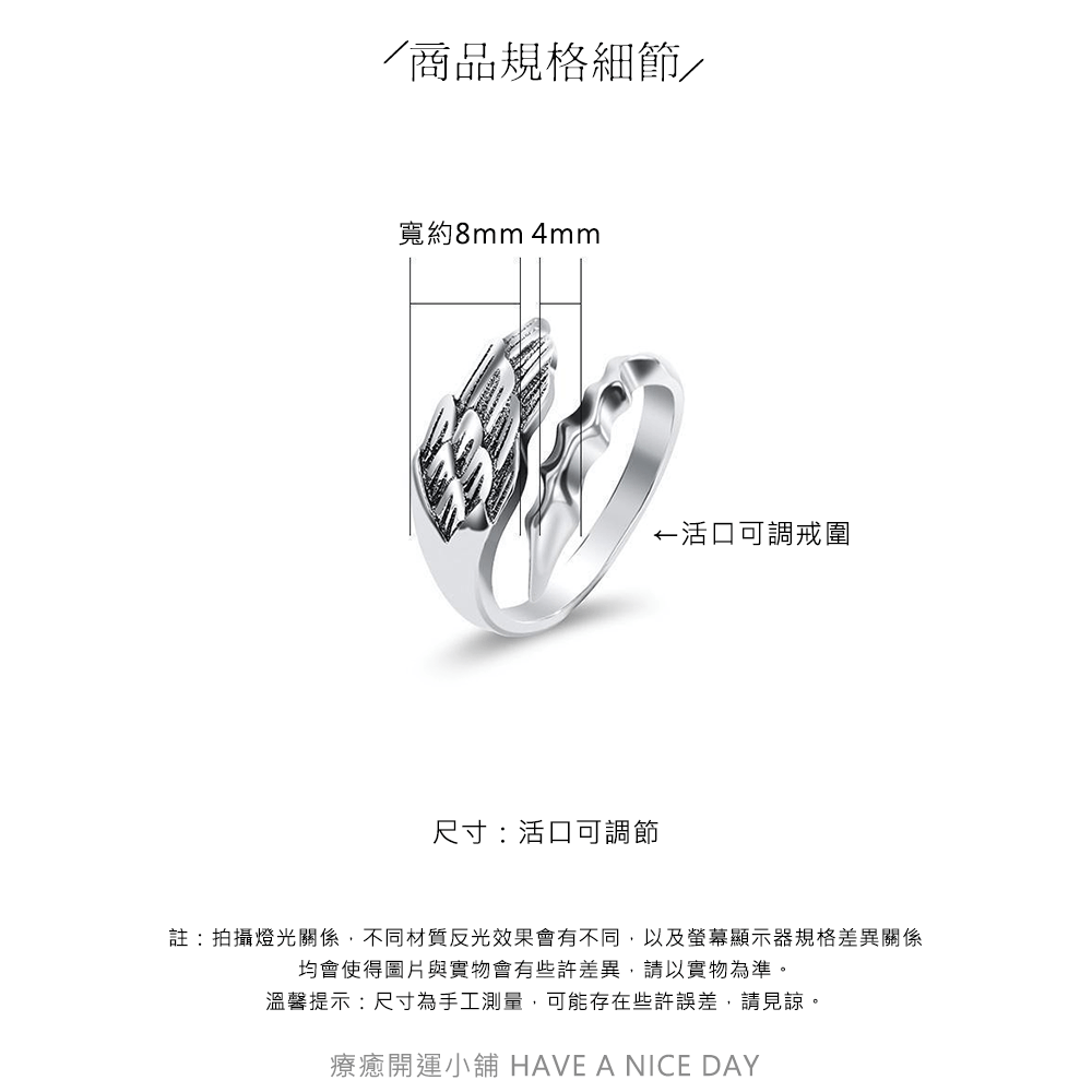 尺寸:活口可調節戒圍,戒面寬約4-8mm