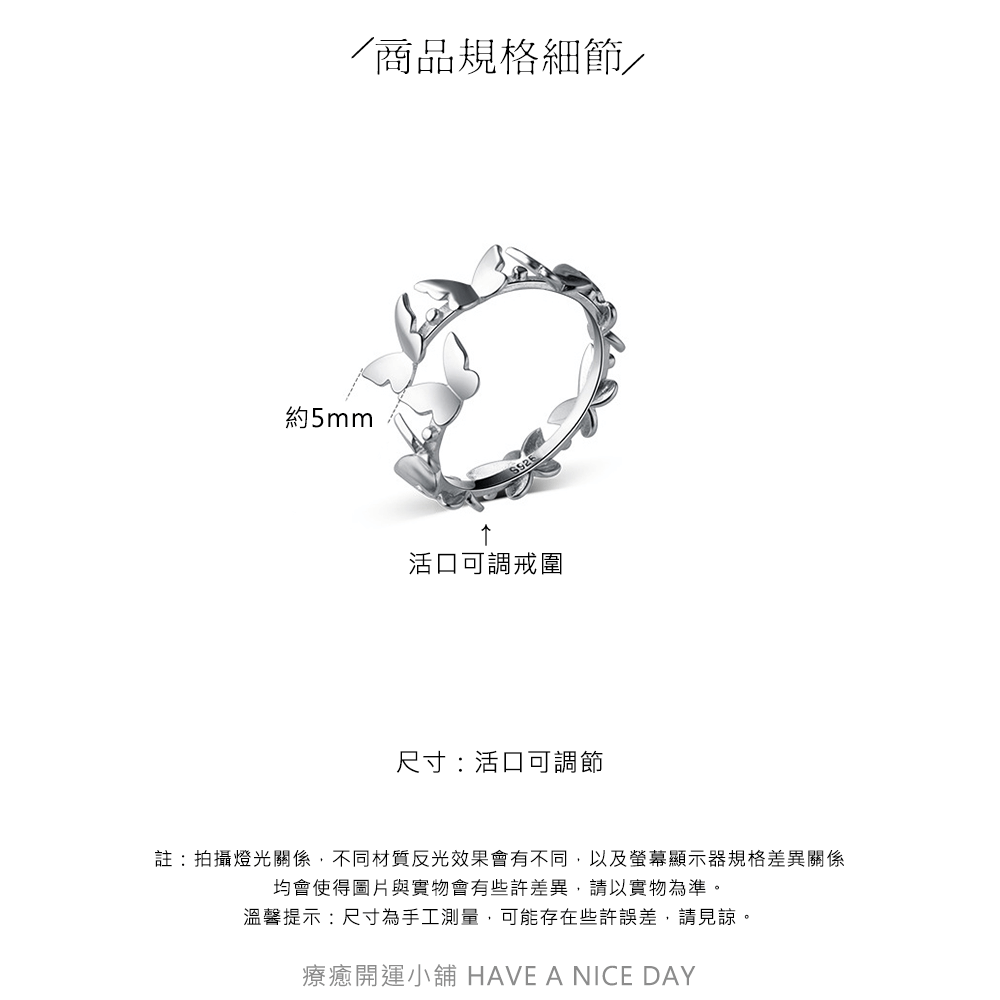 尺寸:活口可調節戒圍,戒寬約5mm